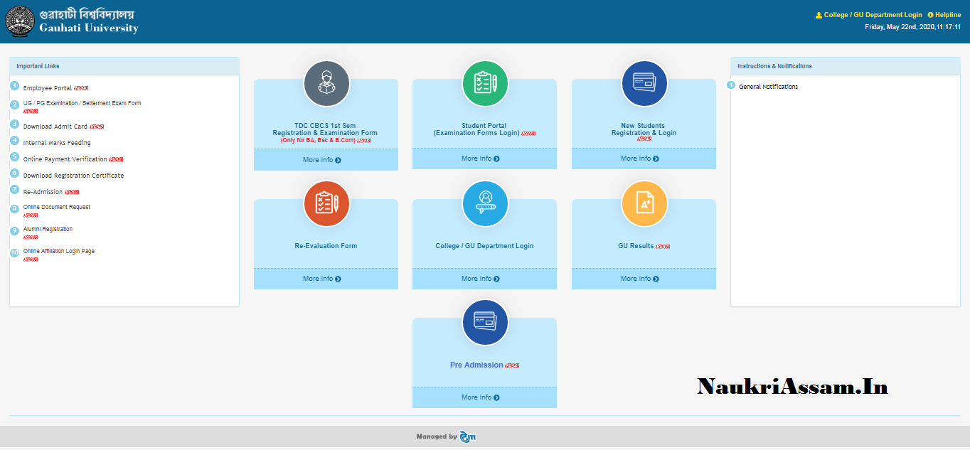 Gauhati University Online Form Fill Up Tdc 2nd 4th 6th Semester Ba om Bsc Gu Portal Naukriassam In Latest Jobs In Assam Guwahati And North East India